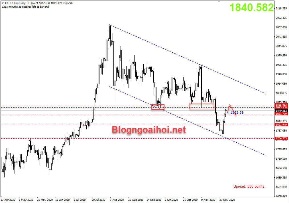 Chiến lược tham khảo : Vàng 4/12 – Chờ tín hiệu bán khi vàng tiến lên vùng kháng cự quan trọng quanh 1850.