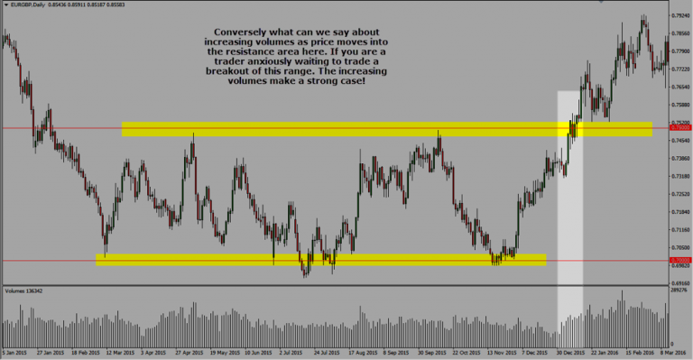 Ngược lại, khi giá đi ngược xu hướng, volume phải thấp dần đi vì ai mà dám trade ngược trend? Volume càng lớn động lực của giá càng cao (anh em hay dùng từ momentum giá… cũng chính là nó). Vì vậy, breakout Trader sử dụng volume để confirm các lệnh trade breakout thành công cũng là điều hợp lý.