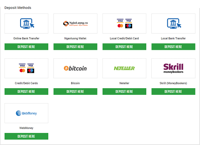 Hiện nay, XM cung cấp 9 cổng nạp tiền cho khách hàng và đây đều là những cổng thanh toán rất quen thuộc và phổ biến. Vậy là quá đủ cho nhu cầu của chúng ta.
